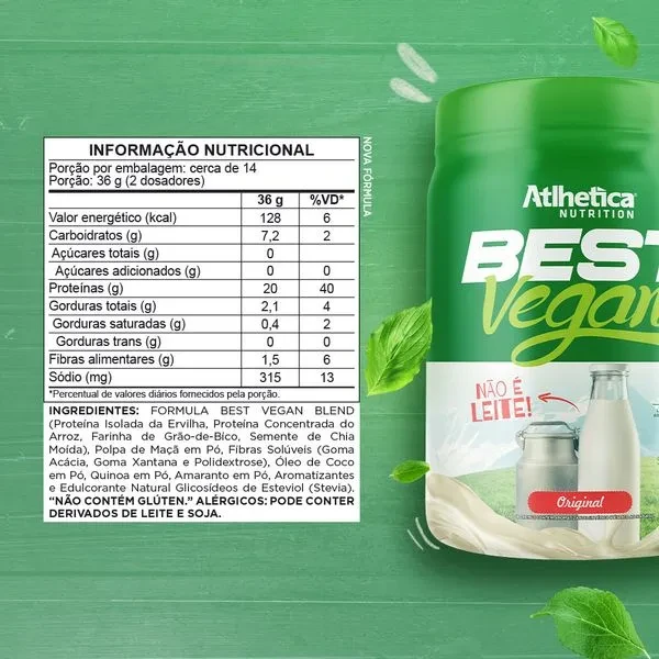 Best Vegan é um produto totalmente vegano que conta com a Fórmula Best Vegan Blend, com proteína isolada da ervilha, proteína concentrada do arroz, proteína concentrada da semente de abóbora e proteína da chia, além de ingredientes naturais e diferenciados que compõem sua fórmula. Best Vegan é ideal para aqueles que seguem uma dieta vegana ou vegetariana, perfeito para te auxiliar a bater suas metas diárias de proteínas e adicionar muito mais sabor no dia a dia!