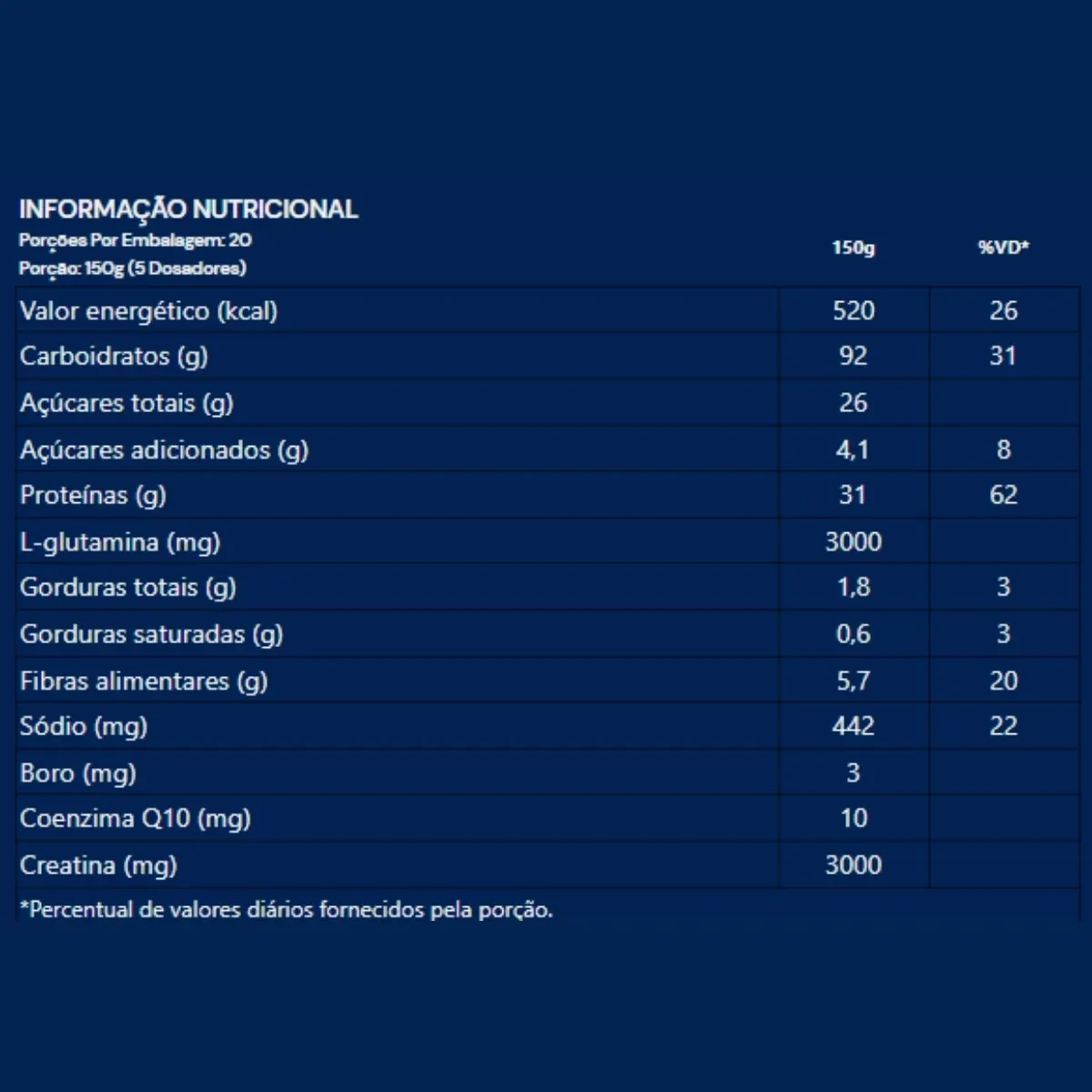 Fórmula Anabólica de Elite com proteínas de alto valor biológico e aminoácidos essenciais.