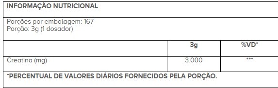 📦 INGREDIENTES: Creatina monohidratada e antiumectante dióxido de silício.