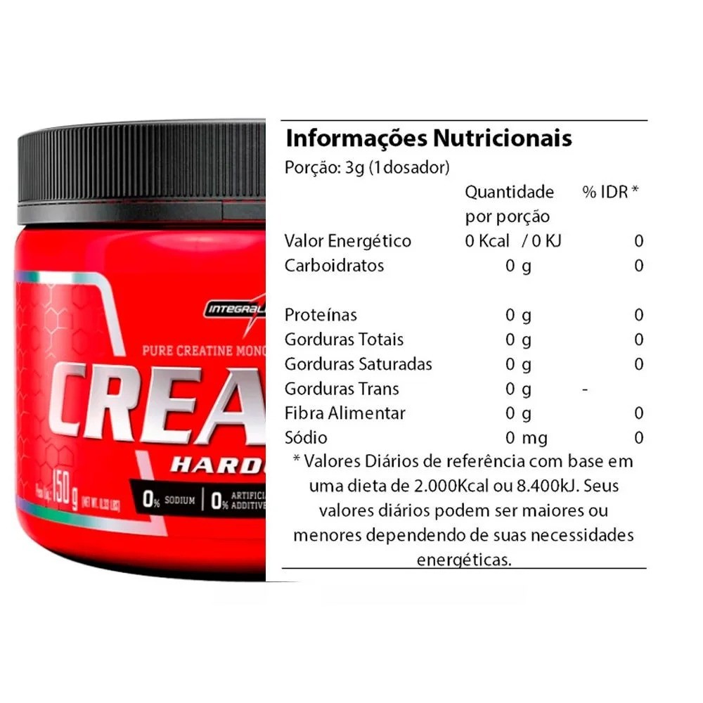 Creatina 100% Pura Hardcore - IntegralmEdica, é um suplemento de alta qualidade, ideal para quem busca ganho de massa muscular, aumento de força e resistência durante os treinos. Sua composição 100% pura e livre de aditivos garante máxima absorção e biodisponibilidade para potencializar seus resultados.