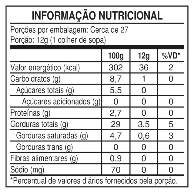 Água, óleo de milho, soro de leite em pó, vinagre, leite em pó integral, amido de batata modificado, cloreto de potássio, extrato de levedura, alho desidratado, salsa desidratada, realçador de sabor ácido glutâmico, aromas naturais, espessante goma xantana, conservador sorbato de potássio e acidulante ácido lático.