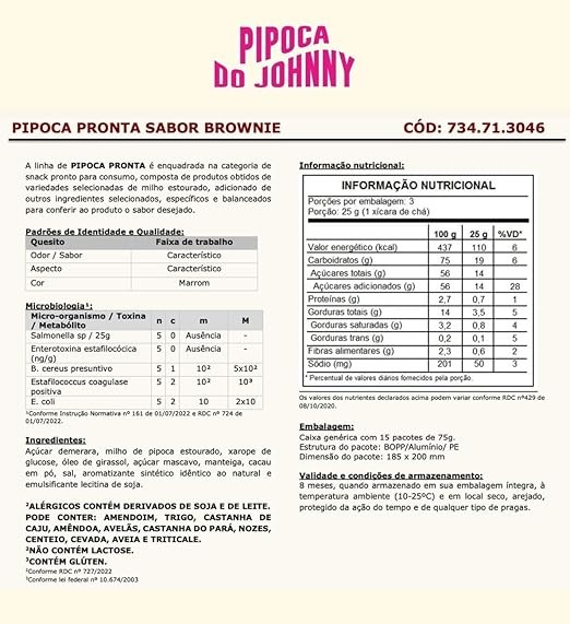 | Informações sobre alérgenos | Contém: Cereais contendo glúten |