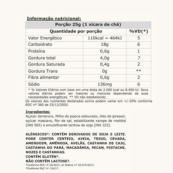 | Informações sobre alérgenos | Contém: Cereais contendo glúten |