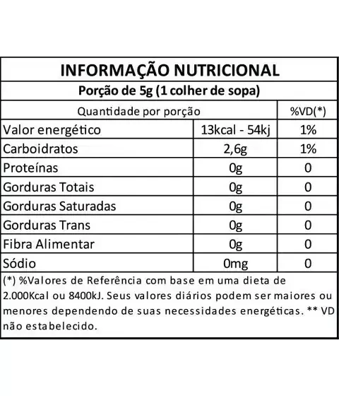 Benefícios: Sem Conservantes, Sem Glúten, Sem Óleo de Palma, Zero Açúcar, Zero Calorias, Zero Gordura, Zero Sódio