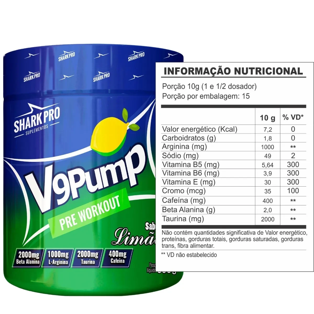 Apresentamos o V9 PUMP Shark Pro, o pré-treino definitivo, desenvolvido para proporcionar resultados extraordinários. Sua fórmula avançada combina de forma estratégica beta-alanina, arginina, taurina e cafeína, aliados a vitaminas e minerais essenciais para otimizar o desempenho.