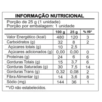 Ingredientes: Cobertura proteica zero açúcar sabor cookies [concentrado proteico do soro de leite, gordura vegetal, maltitol, soro de leite em pó, polidextrose, leite em pó desnatado, corante natural, emulsificante: lecitina de soja e aromatizantes: natural de framboesa e idêntico ao natural de baunilha] ganache zero açúcar sabor chocolate branco (gordura vegetal, maltitol, polidextrose, leite em pó integral, leite em pó desnatado, soro de leite em pó, emulsificante: lecitina de soja e aromatizante idêntico ao natural), placa de wafer (farinha de trigo enriquecida com ferro e ácido fólico, gordura vegetal hidrogenada, cloreto de sódio, emulsificante: lecitina de