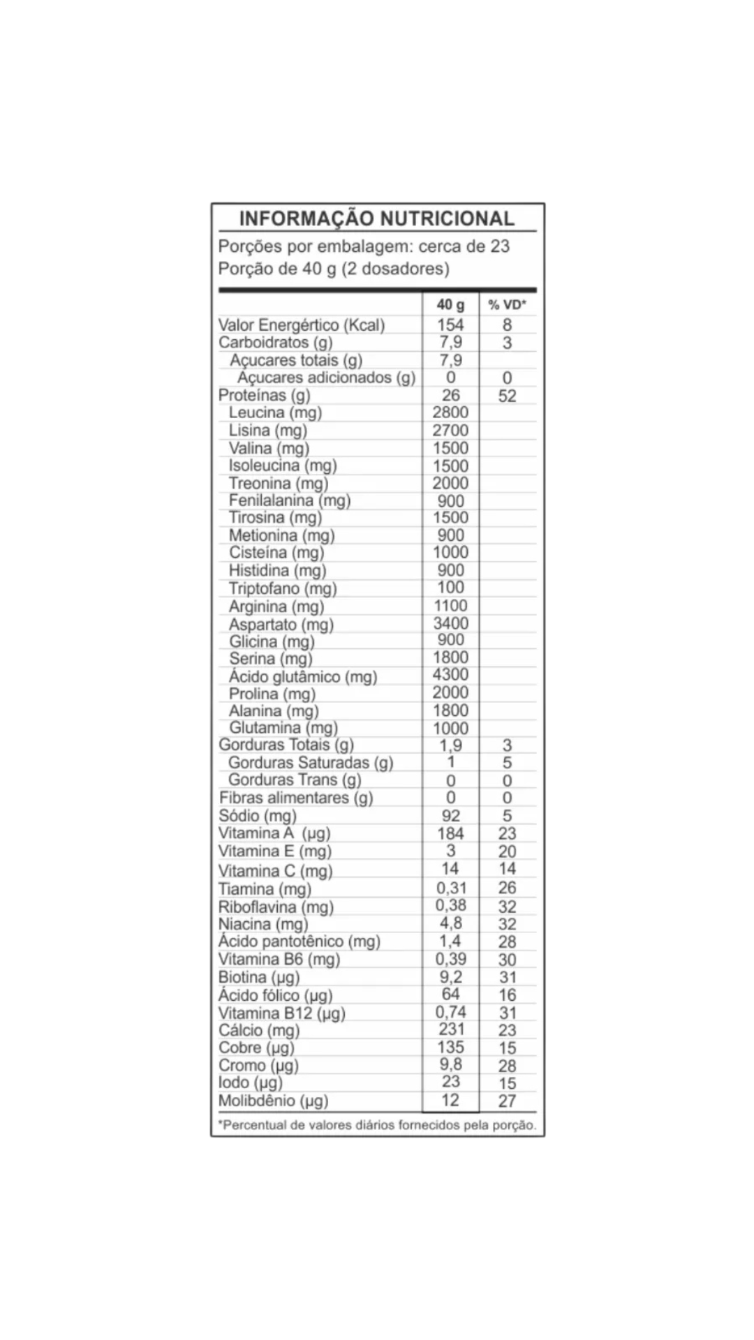 Com 26g de proteínas e 5,8g de BCAAs, este suplemento é uma fonte de cromo, rico em vitamina B12 e B6.